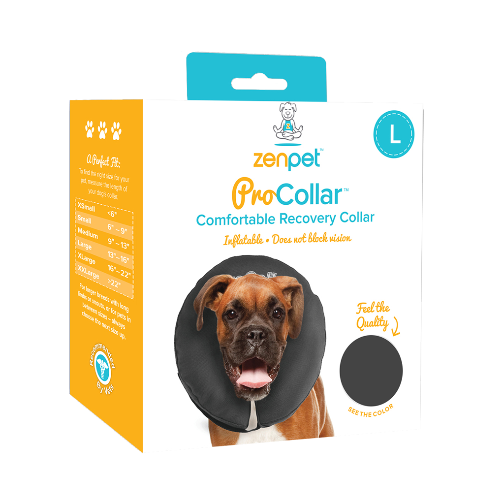 De Zenpet ProCollar blokkeert het zicht niet en laat een huisdier op zijn gemak eten, slapen en spelen.
