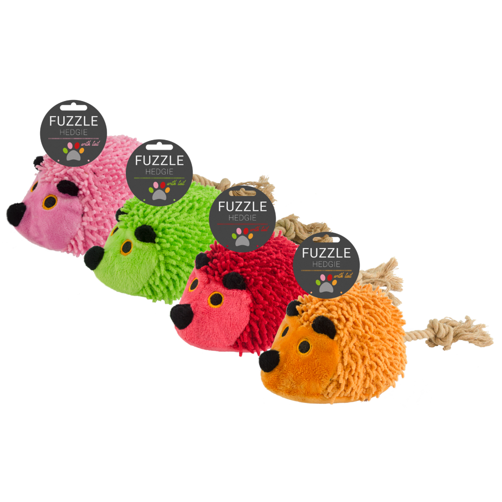 Fuzzle knuffelspeeltjes zijn de ideale knuffel voor uw hond en zijn superzacht. Deze knuffelspeeltjes zijn zeer geschikt voor pups en bevatten een squeaker (pieper) voor extra speelplezier! De staartjes van deze lieve egeltjes zijn gemaakt van sterk (floss)touw, goed voor schone tanden!