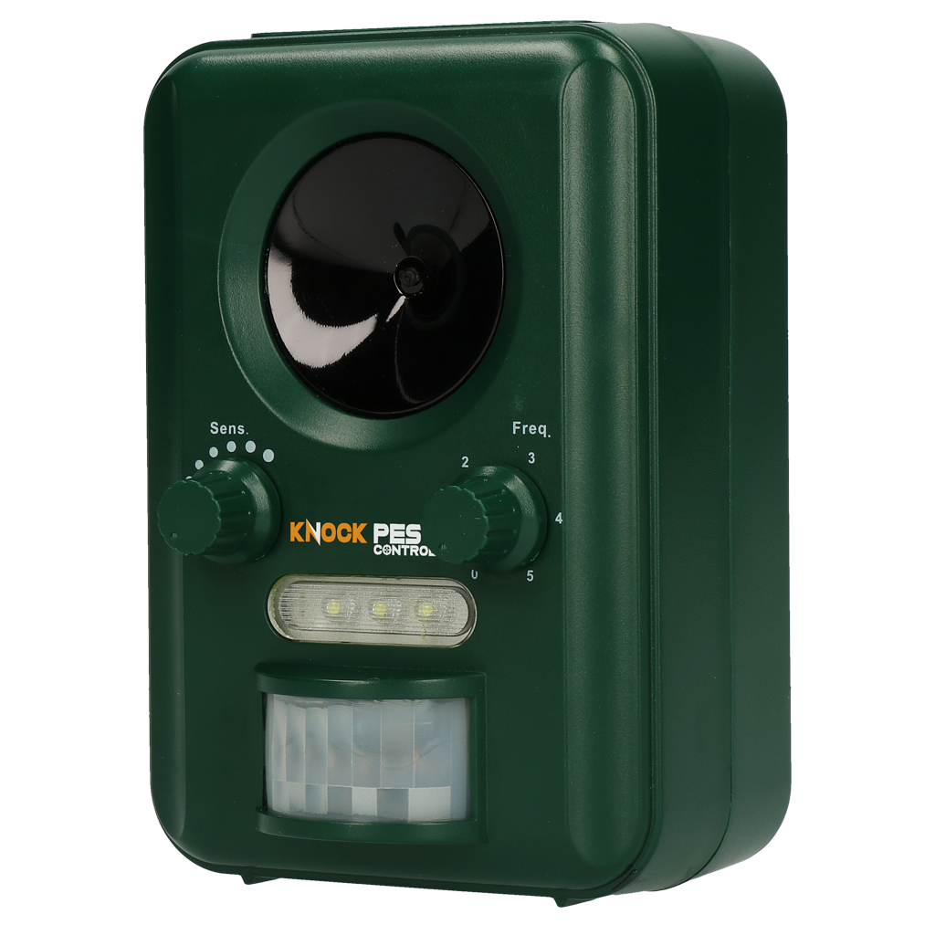 De Knock Pest Solar Animal Repeller verjaagt meerdere ongewenste diersoorten uit uw tuin, vijver of erf. Het ultrasone signaal is zeer sterk en komt alleen in werking als er dieren (bijv. ratten, honden, vossen, katten, vogels, marters etc.) in de buurt komen. De Knock Pest Solar Animal Repeller beschikt over een bewegingsmelder en flits en kan op verschillende manieren ingesteld worden. De Knock Pest Solar Animal Repeller werkt op zonne-energie. Werkt tot ca. 8-10 m afstand.