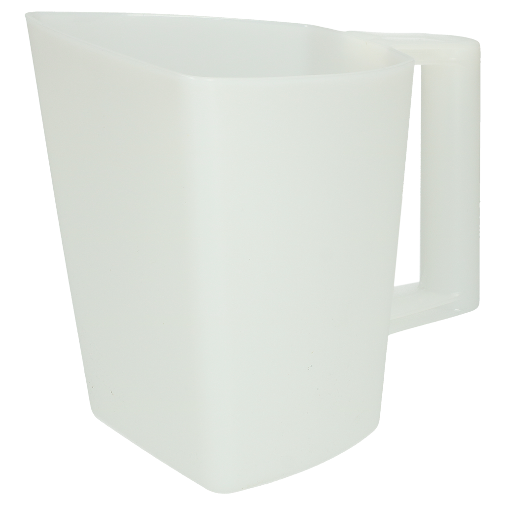 Stevige kunststof voerschep in bakmodel. Aan de binnenzijde is de inhoud aangegeven.