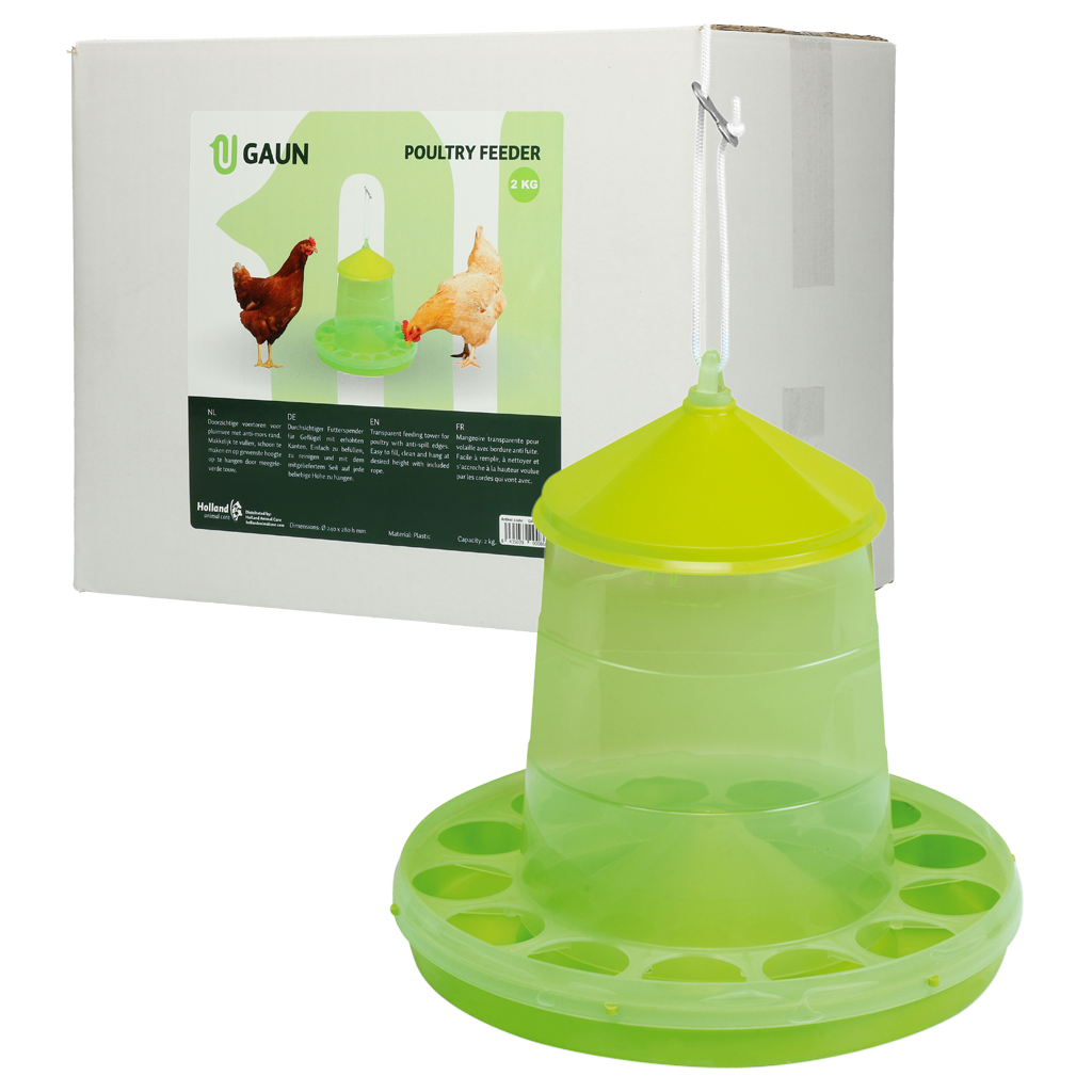 De Pluimvee voertoren Bio Green Lemon is gemaakt van duurzaam en transparant bio-kunststof. Hierdoor is het altijd mogelijk om in één oogopslag te zien of er nog genoeg voer in de voertoren zit. Daarnaast beschikt de toren over handige anti-morsranden, waardoor er nooit voer buiten de toren kan vallen.