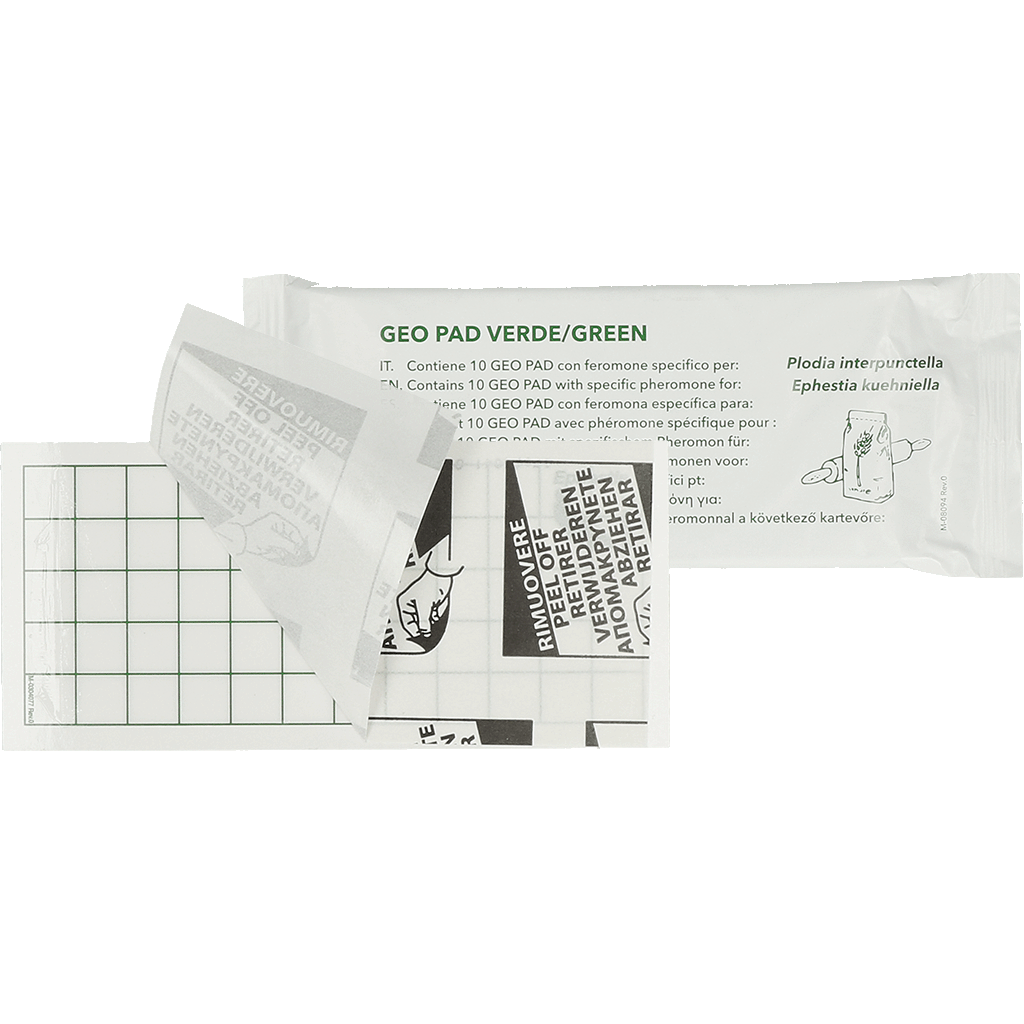 Lijmplaat om levensmiddelenmotten mee te monitoren en te vangen. De Geo Lijmplaat levensmiddelenmotten wordt eenvoudig in de Motten Monitorval (INPEP-04100) geplaatst. In de lijmlaag is het specifieke feromoon geïntegreerd voor het aantrekken van Ephestia/Plodia mottensoorten.
