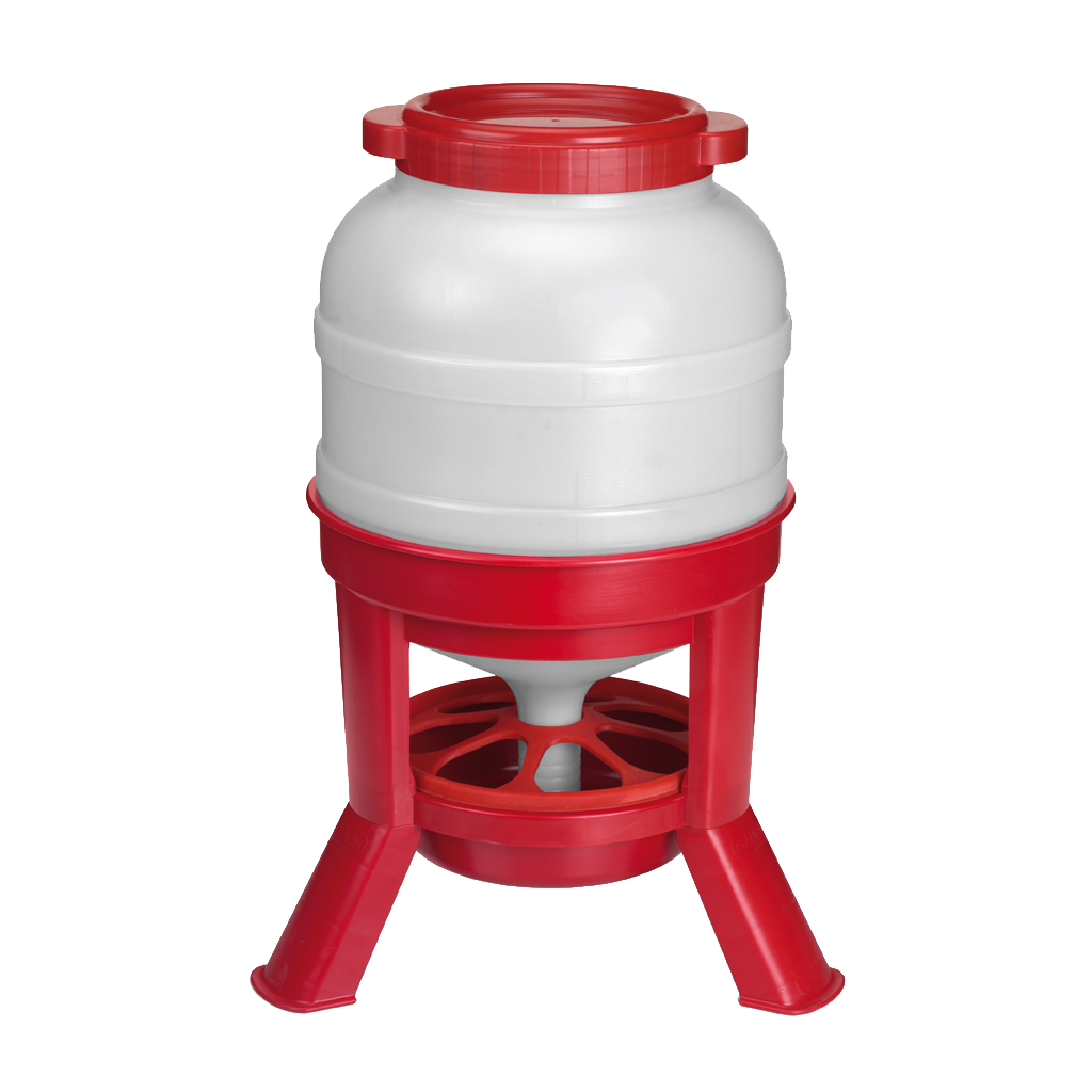 Met de handige Pluimvee voertoren Hopper op pootjes zijn uw kippen, fazanten of andere dieren altijd voorzien van genoeg voedsel. De toren beschikt over een kenmerkende rode kleur en is voorzien van extra stevige poten, gemaakt van kunststof. Aan de bovenkant van de voertoren is het voer bij te vullen en er is een handige anti-morsrand bevestigd, waardoor er geen voer verspild wordt. Deze voertoren sluit zich perfect aan bij uw wensen en situatie, aangezien de toren in varianten van 20, 30 en 40 liter verkrijgbaar zijn.