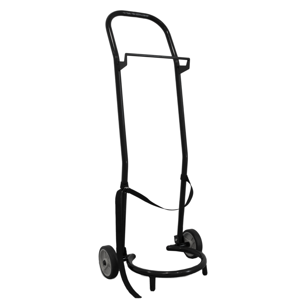 Mobiele trolley voor het makkelijk verplaatsen van de Cow Drencher. Ergononomisch en stabiel, en makkelijk in te klappen en op te ruimen. Met vat- en slanghouder.