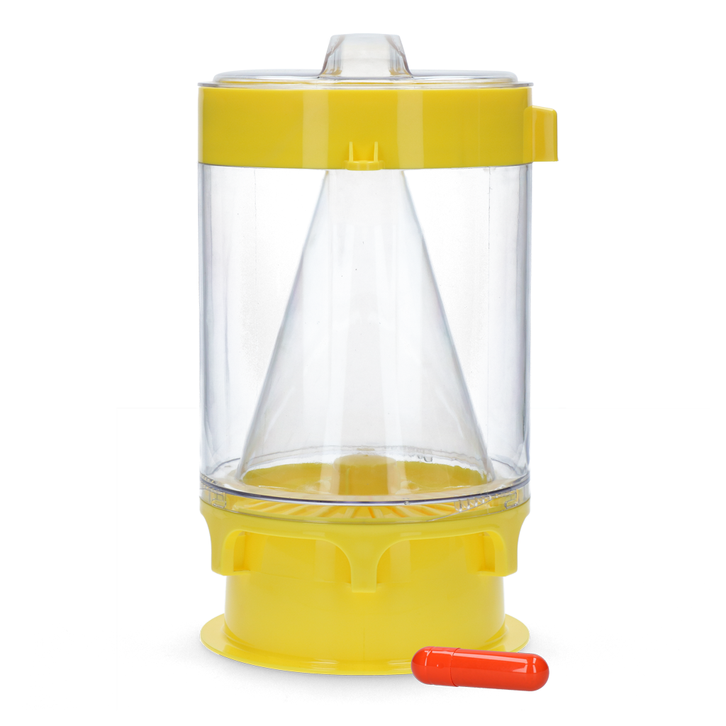 Het speciale deksel op het lokmiddelreservoir zorgt voor gedoseerd vrijlaten van de FlyNip. De unieke constructie van de val in combinatie met de luchtstroming zorgt dat de vliegen gescheiden worden van het water met de lokstof, zodat hierop geen eitjes kunnen worden gelegd.