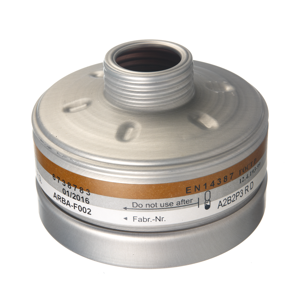 Kwaliteitsfilter A2B2-P3 met roldraadaansluiting (Ø 4 cm).