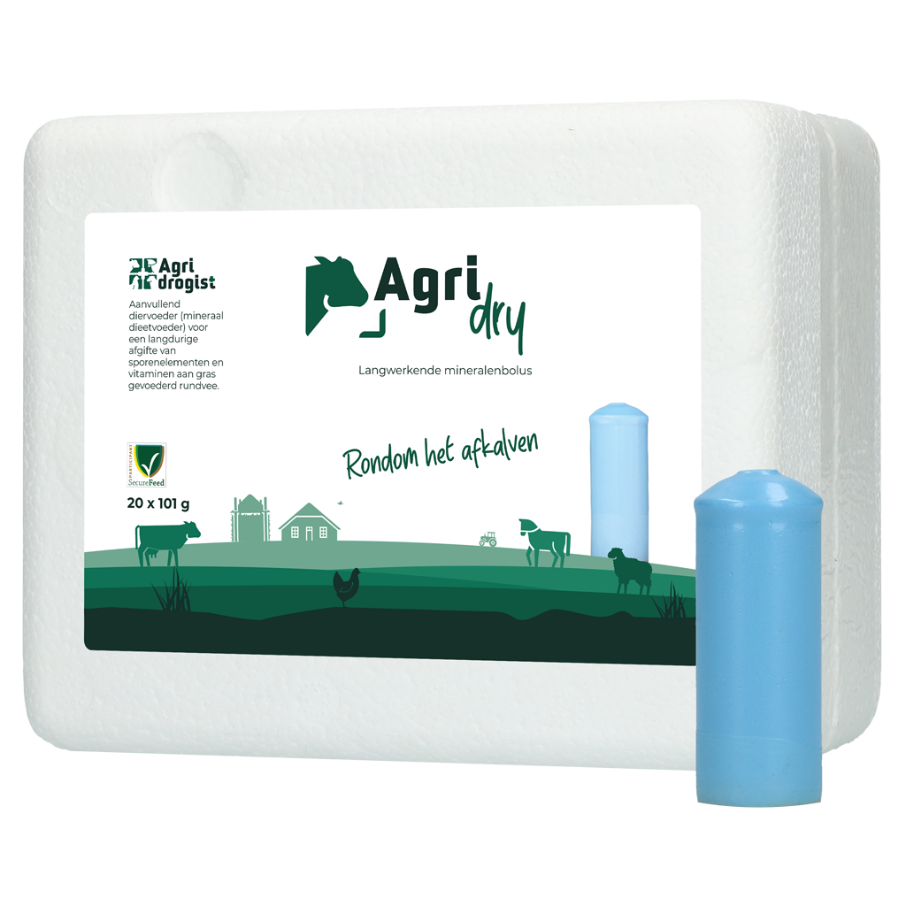 AgriDry, ook wel de droogstandbolus genoemd, is een speciaal ontwikkeld aanvullend diervoeder (mineraal dieetvoeder) voor gras gevoederd rundvee. De bolus is bedoeld voor gebruik tijdens de periode rondom het afkalven en biedt een werkingsduur van 4 maanden. Het voederadvies is 2 onbeschadigde bolussen per dier (vanaf 150kg lichaamsgewicht).