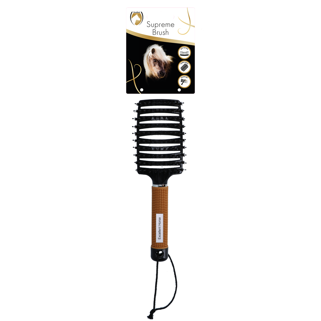 De Excellent Hose Supreme Borstel verwijdert moeiteloos alle klitten uit staart en manen, én voorkomt gespleten haarpunten.