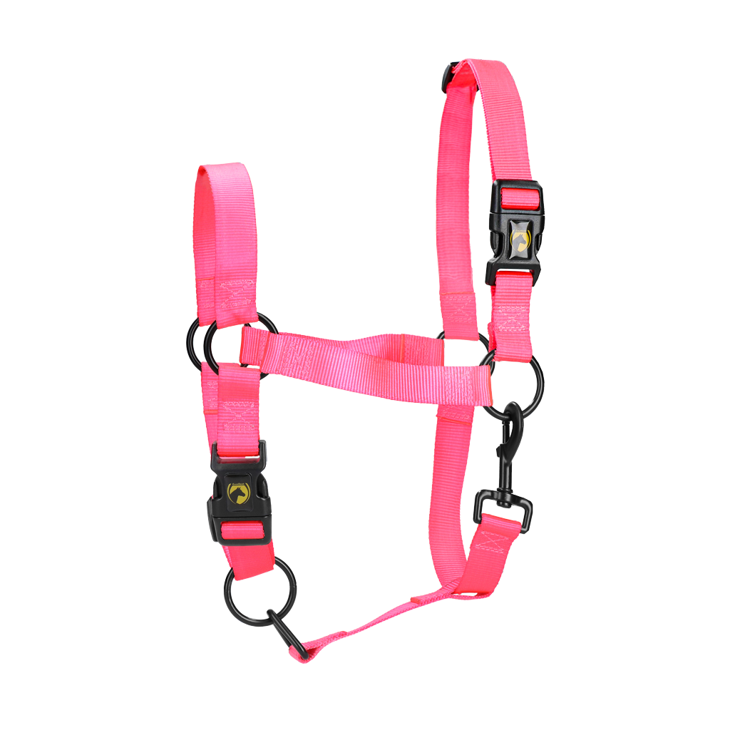 Ga voor gemak met de Essential halsters van Excellent Horse! Deze halsters zijn verkrijgbaar in 5 verschillende kleuren en 5 maten, waardoor u altijd de juiste maat voor uw pony of paard kunt vinden. Dankzij het stevige materiaal van extra dicht gewoven nylon zijn de halsters, flexibel, zacht en slijtvast; ideaal te gebruiken op stal en in de wei dus. Het halster is eenvoudig binnen enkele tellen om te doen en dankzij de klikgesp-sluiting bij zowel de neusriem als het kopstuk is het halster uitermate geschikt voor (jonge) paarden die kopschuw zijn. Daarnaast bevindt op zowel de neusriem als het kopstuk zich een gemakkelijk bedienbaar verstelsysteem.