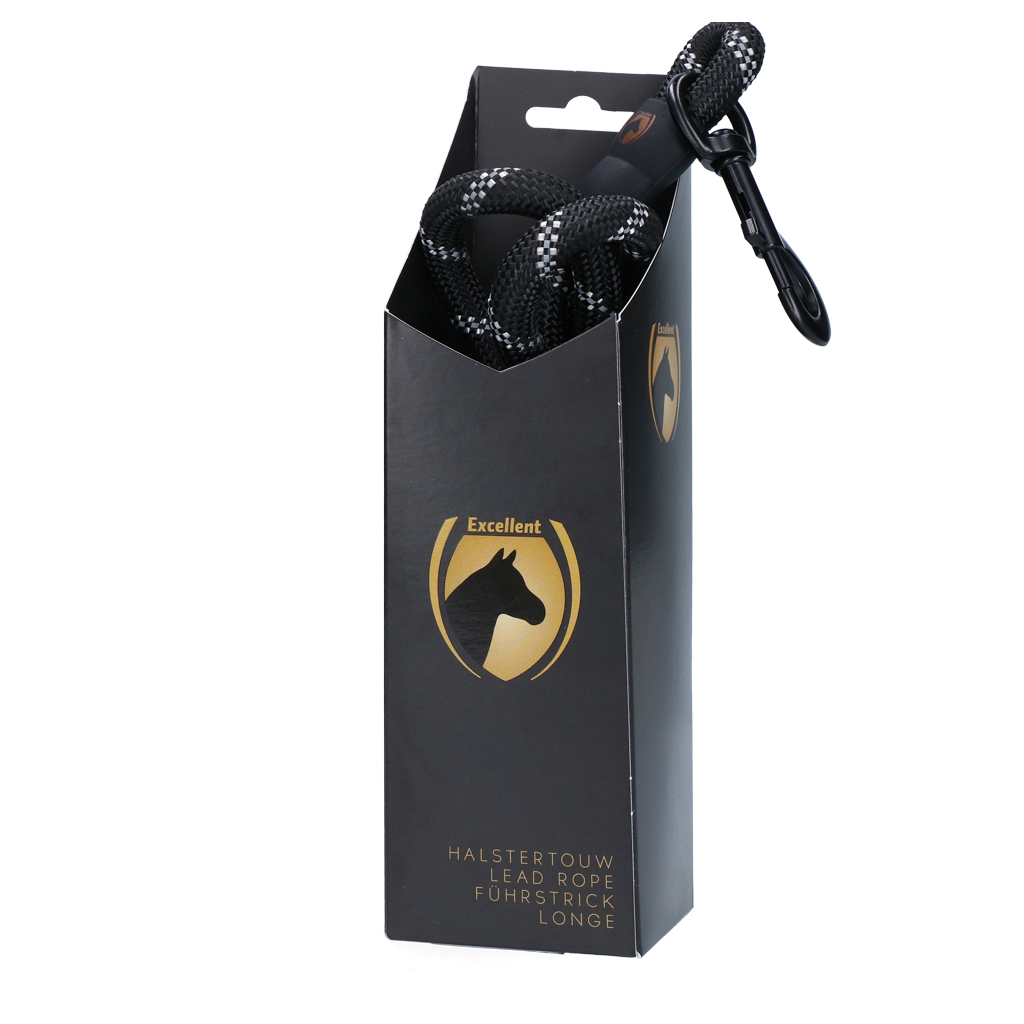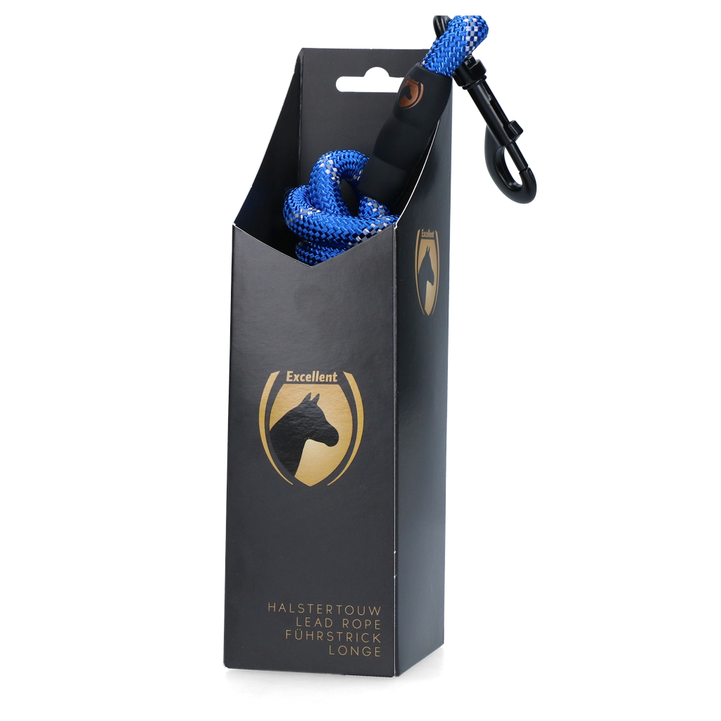 Het halstertouw van Excellent Horse is te combineren met alle halsters van Excellent Horse en is dan ook in 5 verschillende kleuren verkrijgbaar. In het halstertouw zitten reflecterende details en het gebruikte materiaal, namelijk sterk polyester, wordt ook gebruikt door bergbeklimmers. De bevestiging van het halstertouw bestaat uit een 360 graden draaibare musketonhaak (zwart) met een fraaie rubberafwerking. Het halstertouw heeft een lengte van 2 meter.