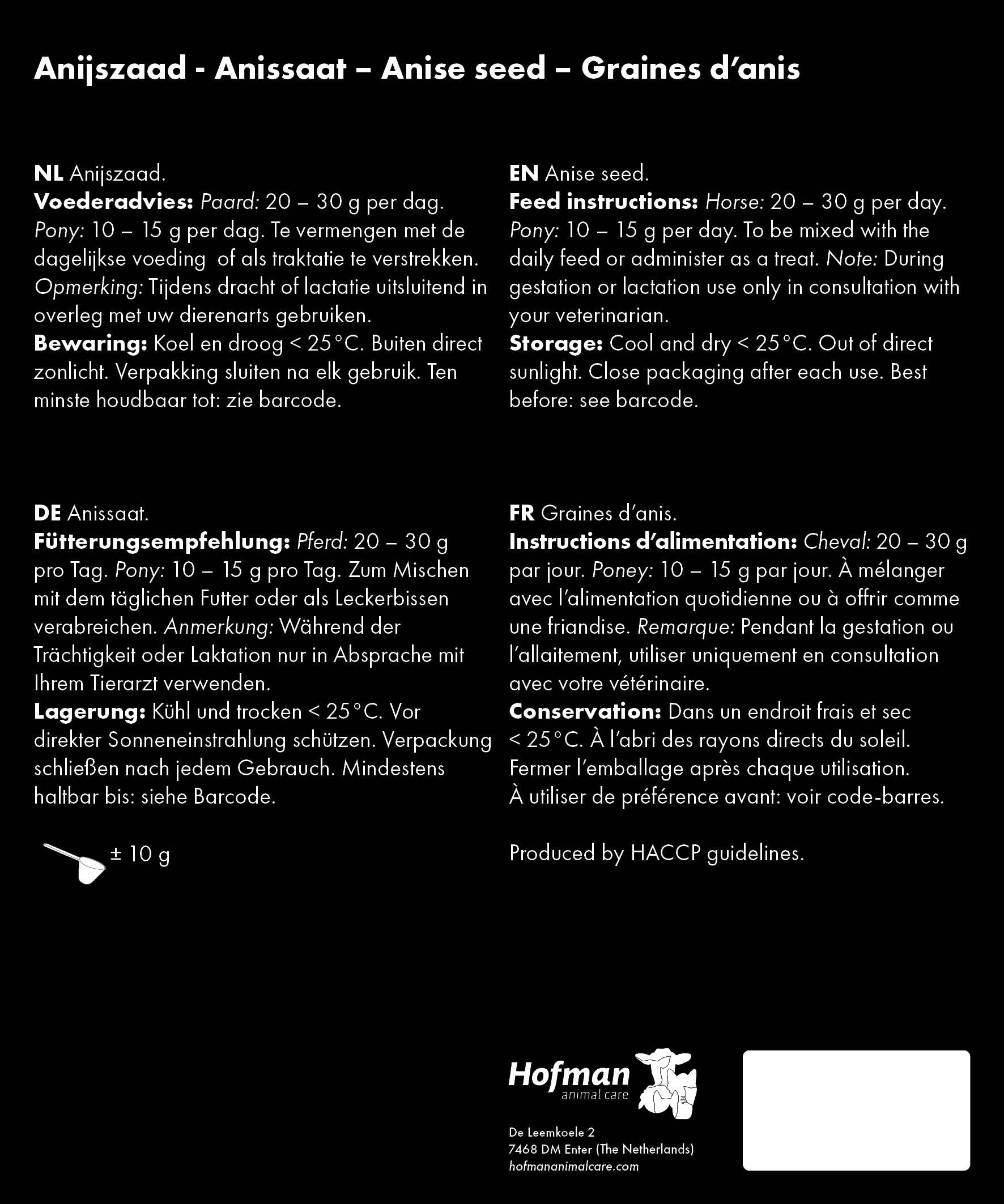Ter ondersteuning van de luchtwegen of spijsvertering. Ook wordt anijs gebruikt om andere voedermiddelen smakelijk(er) te maken.