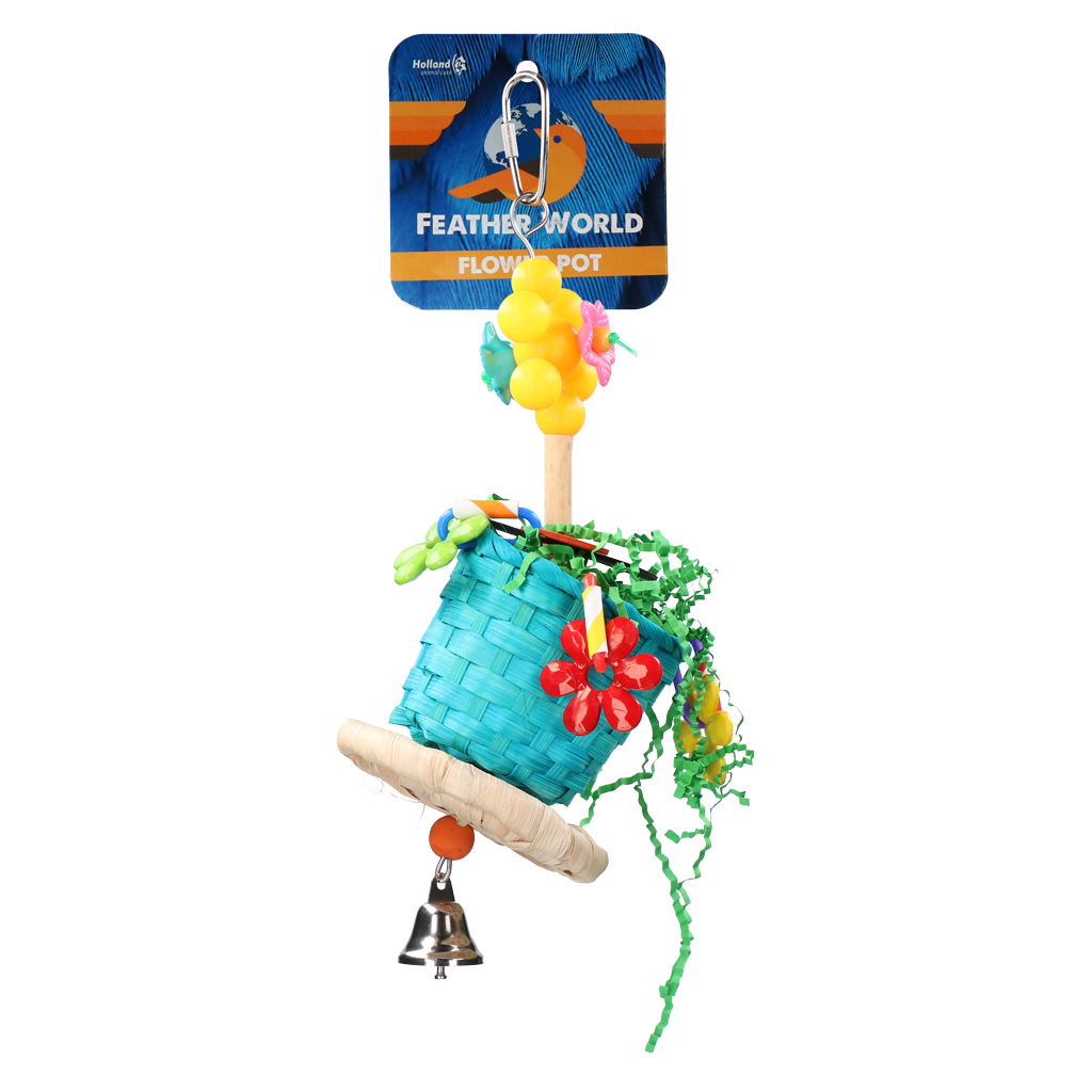 Het kan makkelijk in de kooi worden gehangen en zit boordevol leuke details, zoals bamboe en een belletje.