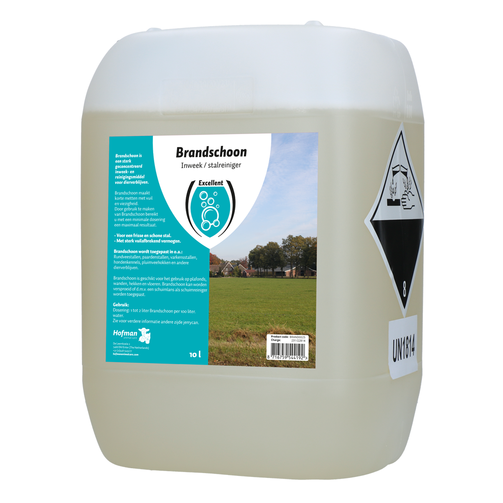 Te gebruiken in alle hondenkennels, rundveestallen, paardenstallen, pluimveehokken, kortom alle dierverblijven. Brandschoon is geschikt voor het schoon maken van plafonds, wanden, hekken en vloeren.