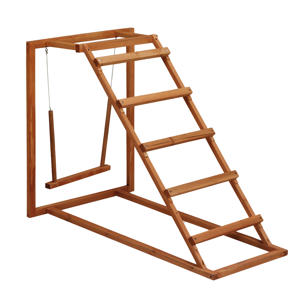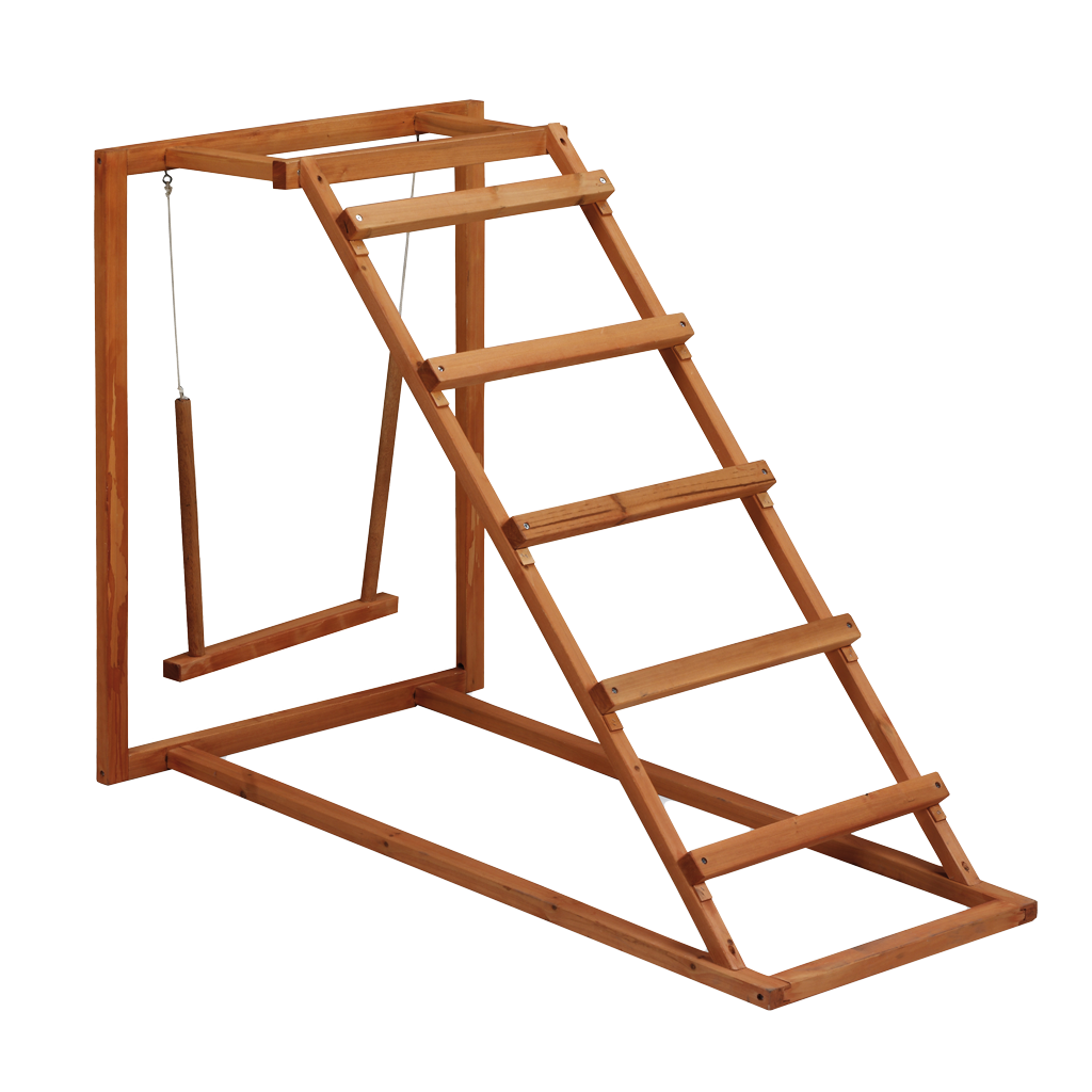 Speelgoed om kippen actief te houden. Ze kunnen erop klimmen, zitten, of schommelen.
