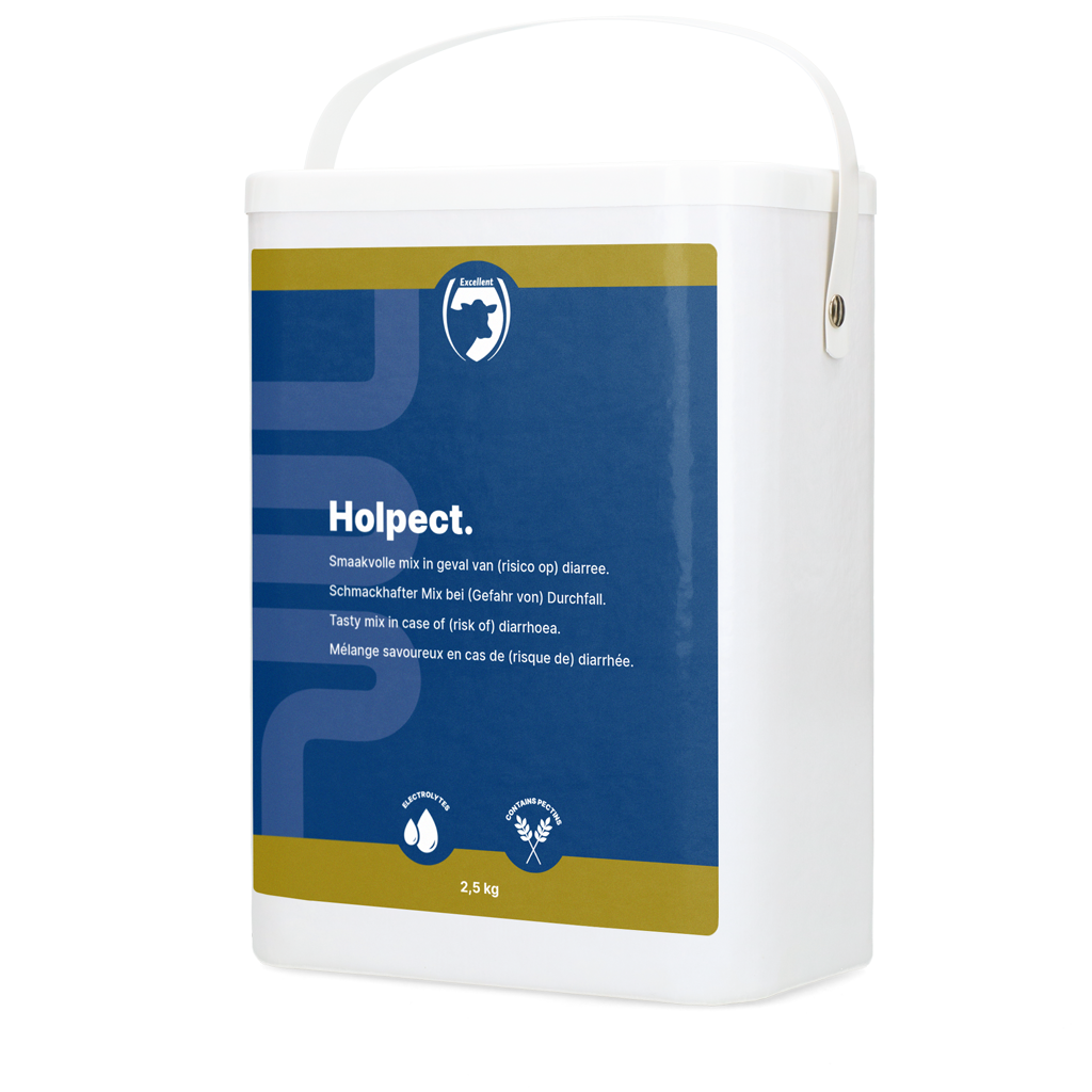 2 tot 3 maal daags 1 g Holpect per kg LG oplossen in 2 l water (50-70 g/kalf/voeding).
