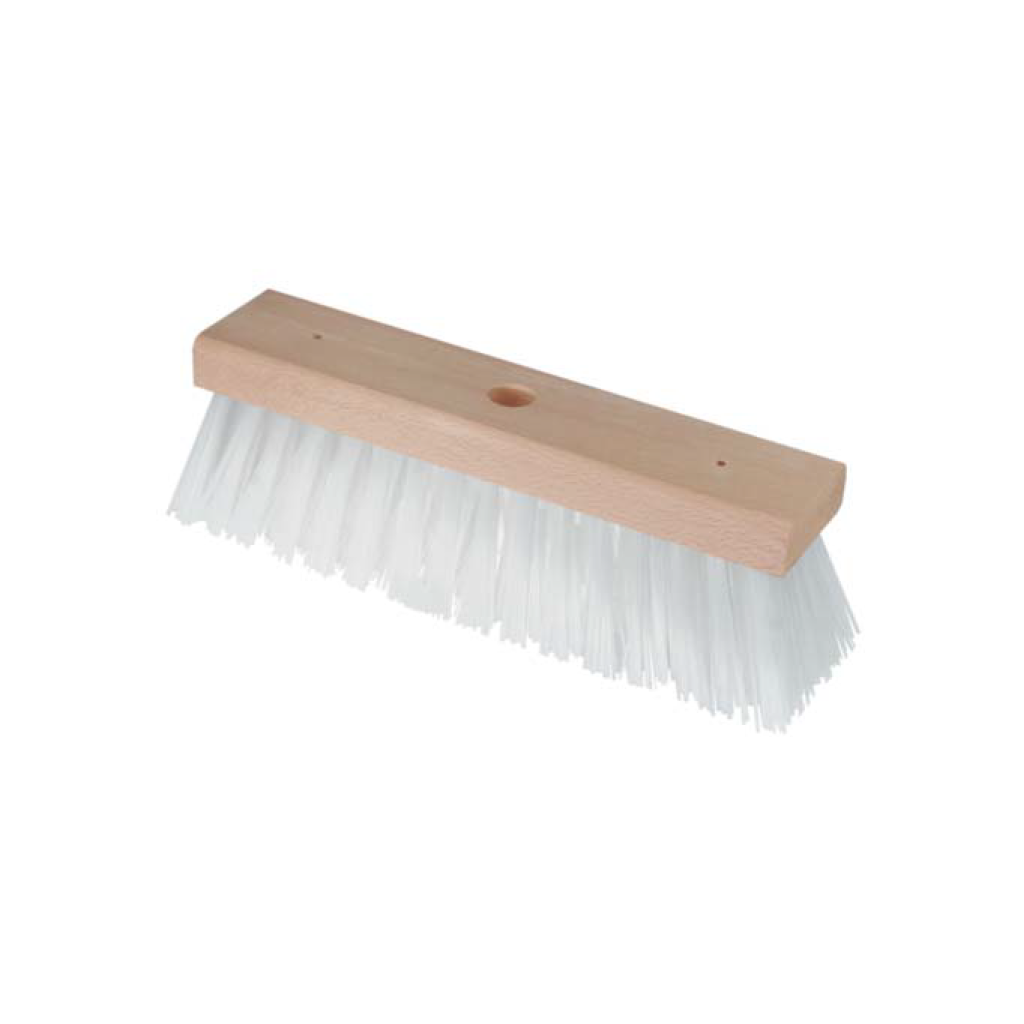 Gemaakt van krachtige, witte kunststof vezels en bevestigd aan een houten frame.