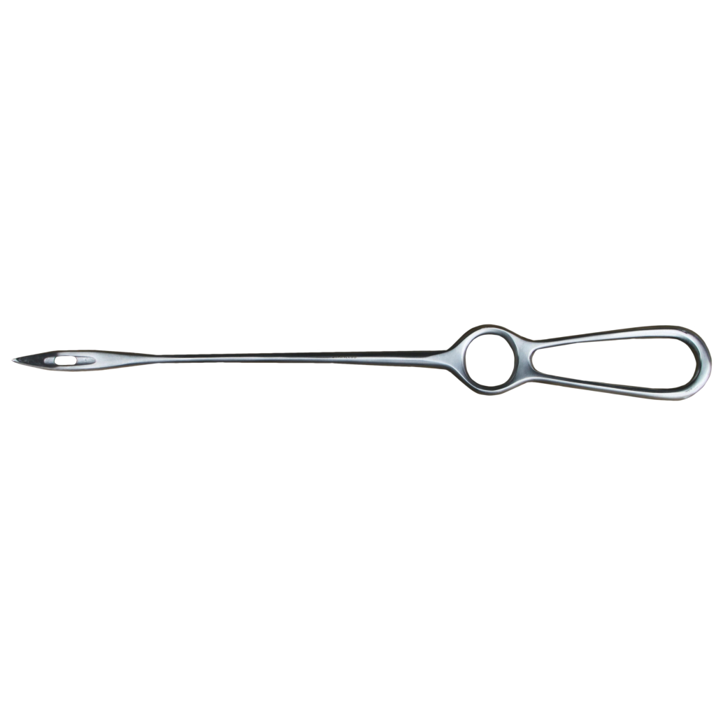 Schedenaald voor het inbrengen van schedeband in de vagina van het schaap ter voorkoming van prolaps.