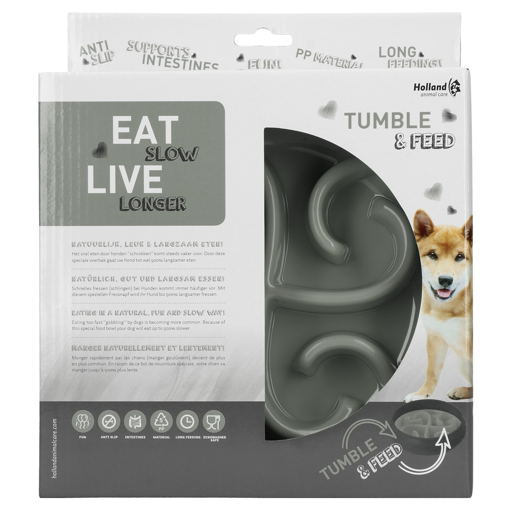 Met de Eat Slow Live Longer Tumble Feeder behoort schrokken tot het verleden! Deze voerbak met een spiraalvormig patroon zorgt ervoor dat een hond of kat lastiger bij het droogvoer kan, waardoor het huisdier minder grote happen neemt, langzamer eet en beter kauwt. De slowfeeder heeft daarnaast een ronde onderzijde en beweegt als het huisdier eruit eet, voor extra uitdaging. De Tumble Feeder is vaatwasserbestendig.