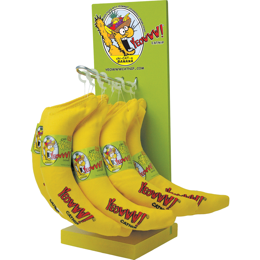Deze banaan zit tjokvol catnip, een kruid waar katten heel blij en speels van worden! Dit leuke kattenspeeltje van organisch katoen is volledig gevuld met catnip, dus geen vulmiddel! Yeowww! verbouwt organisch kattenkruid en selecteert alleen het beste blad en bloesem voor de vulling van de productlijn. Dit is te merken aan de kat, wanneer deze in aanraking komt met dit speeltje zal er zeker een reactie zijn! Klik maar eens op de link om te zien wat goede catnip voor een uitwerking heeft op katten!