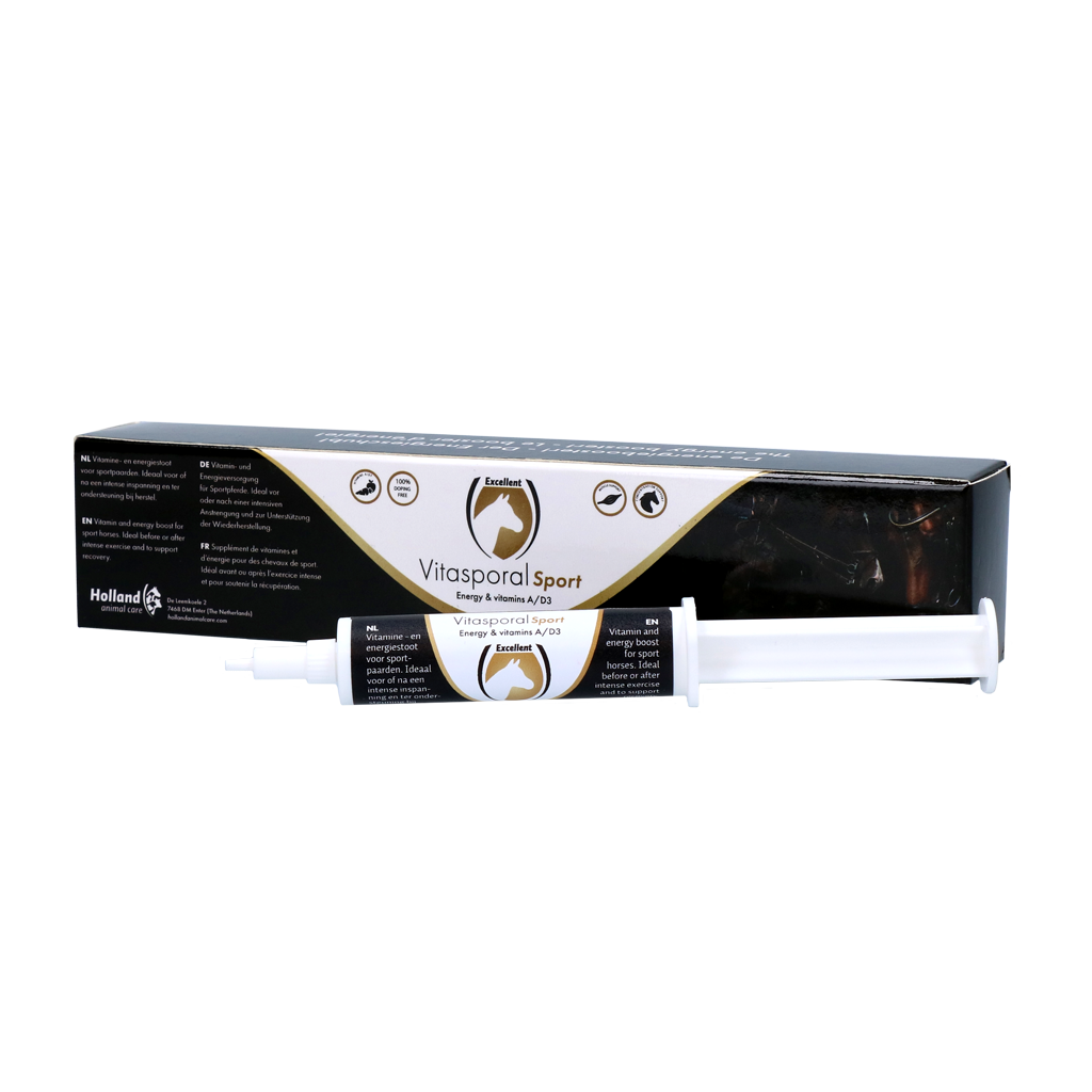 Vitasporal Sport is het geheime wapen voor topprestaties. Het zorgt ervoor dat je paard meer energie heeft tijdens wedstrijden en sneller herstelt na de tijd. Daarnaast werkt het als een opkikker voor paarden, doordat het vitamines en voeding bevat. Vitasporal Sport is aanvullend diervoeder voor paarden.