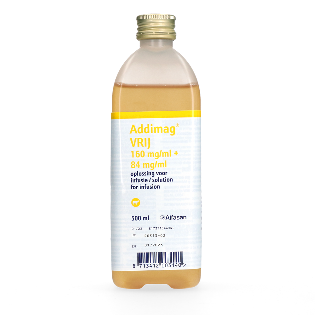 Oplossing voor infusie voor runderen ter behandeling van kopziekte en melkziekte met calcium, magnesium en een hoog aandeel energie in de vorm van gluconaat-monohydraat.
