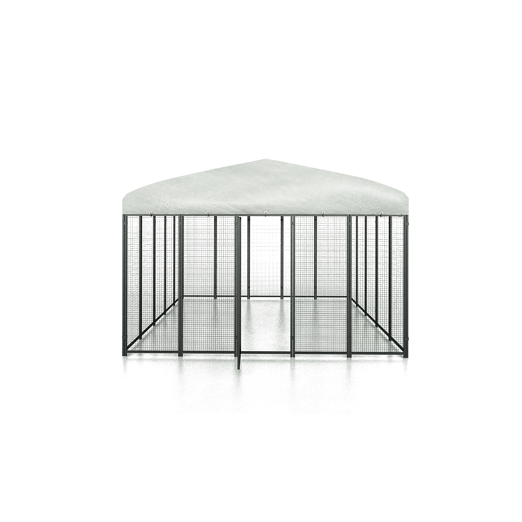 Gemaakt van koolstofstaal met een antioxiderende poedercoating. De structuur is gemaakt van buizen van 20 x 20 cm met een dikte van 0,8 mm. Het maasnet is 25 x 25 mm en heeft een dikte van 1,8 mm. Met een dak van premium polyethyleen (PE), dat waterafstotend en UV-bestendig is. De kleur is groen (RAL 6005).