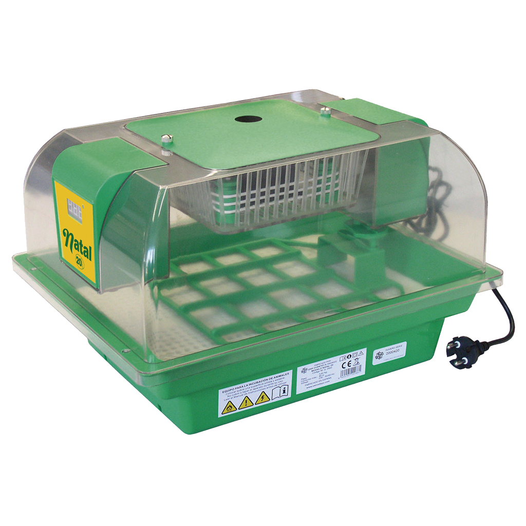 De Natal 20 broedmachine is geschikt voor kleine en middelgrote pluimvee eieren, met een capaciteit van 16 eieren. Voorzien van luchtcirculatieregeling, automatisch draaien en een watertoevoer van buitenaf. Deze broedmachine is eenvoudig te reinigen en te onderhouden, heeft een transparant deksel en is gemakkelijk te gebruiken.