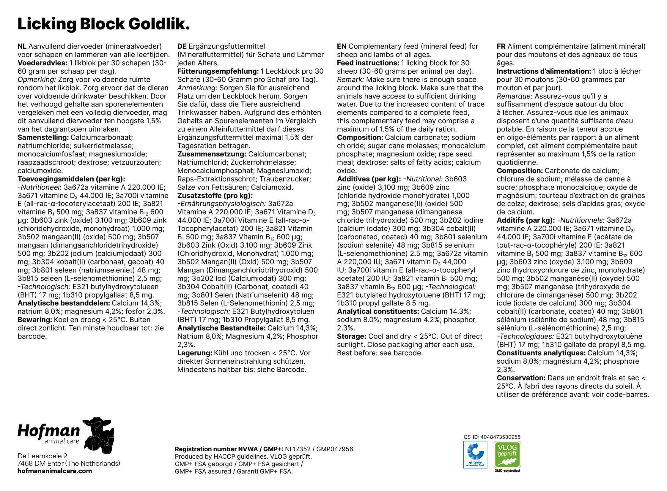 Mineralenmengsel in de vorm van een likblok verrijkt met melasse, ter aanvulling van mineralen en sporenelementen voor schapen en lammeren van alle leeftijden.