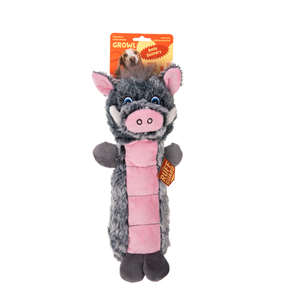 De Growl Belly Busters combineren een innovatief piepdesign met een robuuste constructie. Elk speeltje beschikt over een extern piepvlak en een extra grote pieper binnenin, waardoor het speelgoed honden uitdaagt en langdurige speelervaringen biedt.