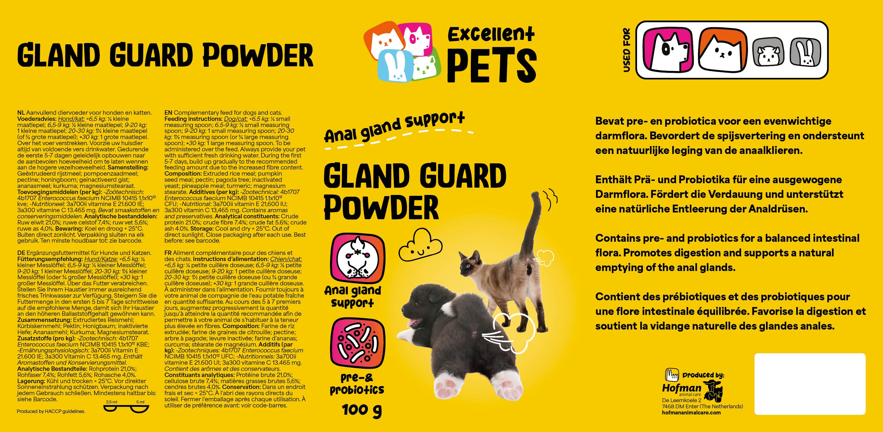 Excellent Pets Gland Guard Poeder bevat prebiotica en probiotica: