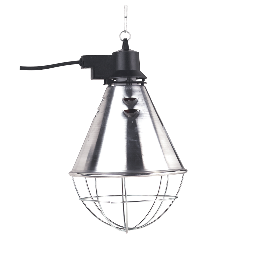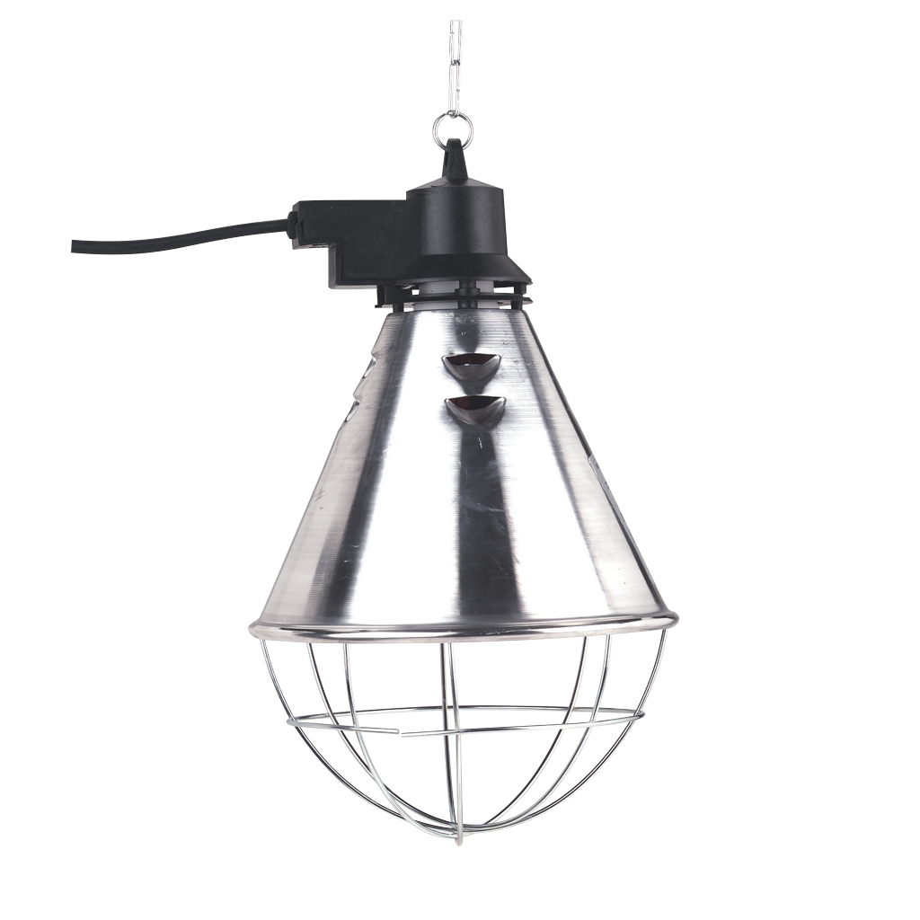 5 meter draad. Voorzien van 8 luchtgaten voor een nog betere luchtcirculatie, waardoor de levensduur van de infraroodlamp langer wordt. Let op dat de afstand van de lamp tot de grond minimaal 60 cm bedraagt.