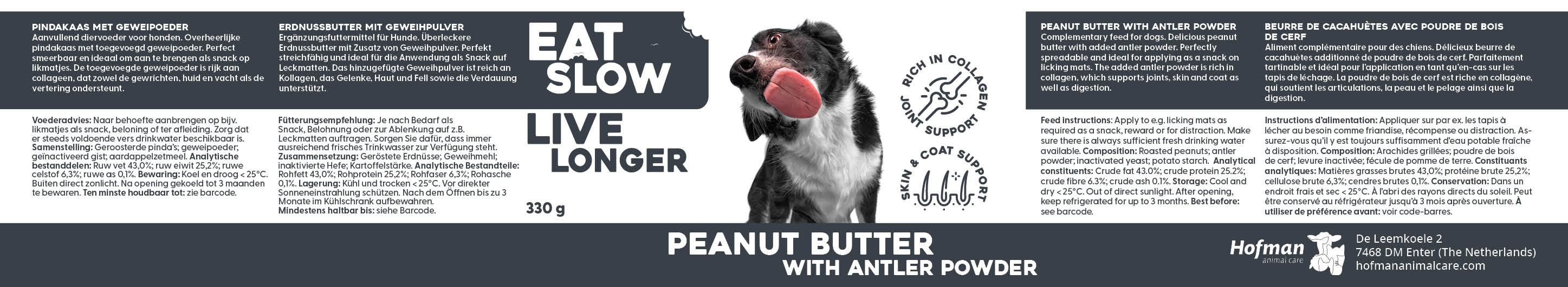 Deze aanvullende voeding voor honden combineert de onweerstaanbare smaak van pindakaas met de gezondheidsvoordelen van toegevoegd geweipoeder.