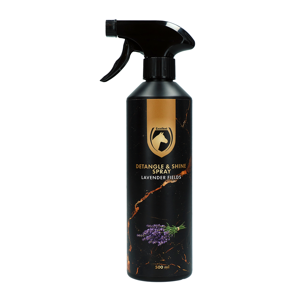 Excellent Horse Detangle & Shine Spray is een verzorgende glans- en antiklit spray voor manen en staart. De spray maakt het haar makkelijk doorkambaar, houdt het soepel en zacht en geeft een natuurlijke glans. De lichte formule trekt snel in, droogt snel en laat geen vettig of plakkerig laagje achter, waardoor het haar luchtig en goed handelbaar blijft.