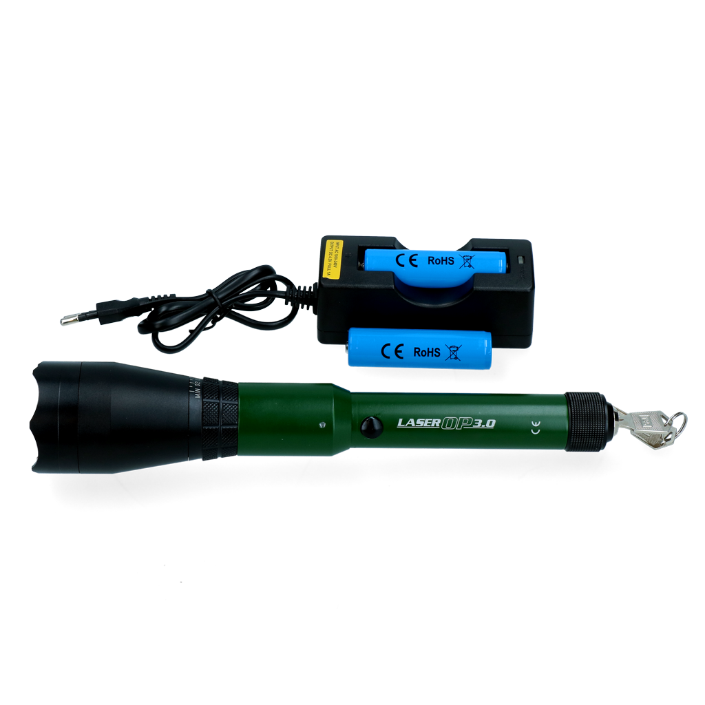 Deze krachtige groene laserzaklamp is speciaal ontwikkeld voor het effectief verjagen van vogels zoals ganzen, meeuwen, kauwen, spreeuwen en andere overlastgevende vogel. Met een bereik van meer dan 2 kilometer in het donker is de LaserOp 3.0 ideaal in te zetten op agrarische bedrijven, bedrijfsterreinen, sportvelden, glastuinbouw en vijvers.