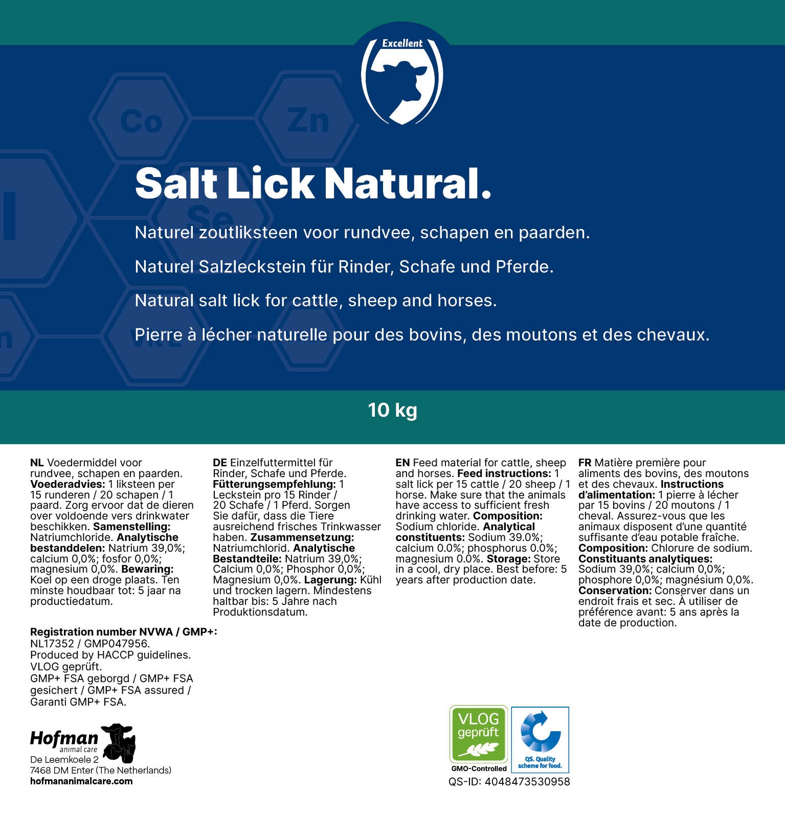 Liksteen gemaakt uit natuurlijk rotszout. Dit bevat natuurlijke mineralen en zout. Onmisbaar voor ieder rund, paard en schaap.